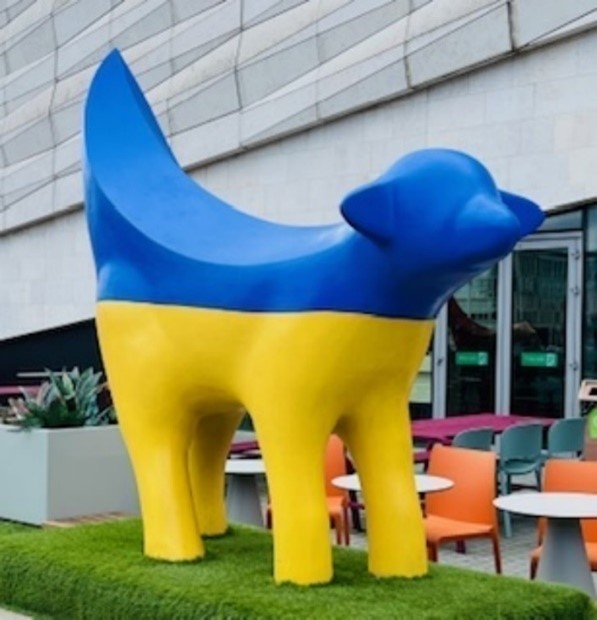 A mini lambanana decorated in support of Ukraine