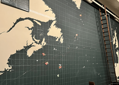 Churchill’s silence wasn’t from indifference. He wanted to conceal Liverpool’s critical role in the Battle for the Atlantic where hidden beneath a nondescript building a few blocks from the waterfront, the Western Approaches command center tracked convoys across the North Atlantic. As caravans of ships carried troops and vital war materials across dangerous, U-boat-infested waters, members of an all-female naval corps plotted their course on a huge wall tracing the supply boats, their warship escorts and the Allied airplanes providing cover from remote outposts in Greenland.