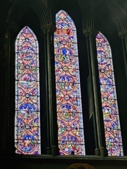 Despite the city’s catalogue of tomes, authors and plays, its most famous manuscript is the Book of Kells. And for €50 Robie and I could see two beautifully illustrated, highly decorated, dimly lit pages from the New Testament Gospels alongside fifty other tourists elbowing for a peek before being herded into the Trinity College Library where all but the lower shelves have been emptied to preserve the books for future generations.