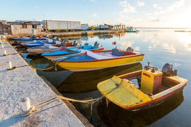 Colorful fishing boats at Cockburn Harbor on South Caicos