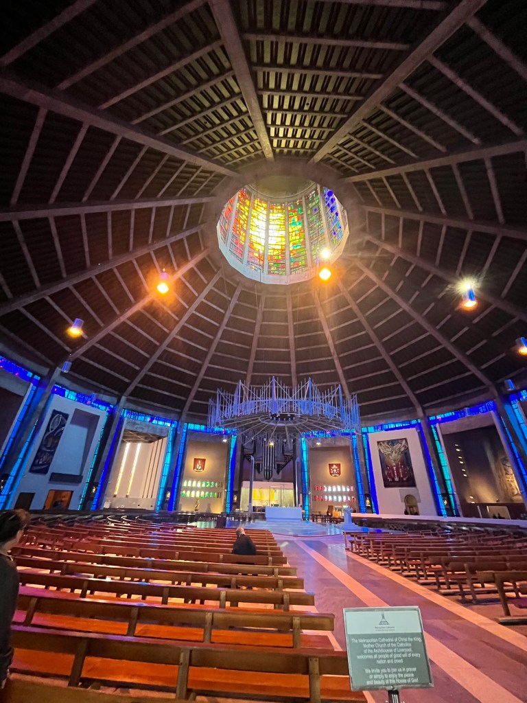 The Liverpool Metropolitan Cathedral is a contrast of old and new with its modern theater-in-the-round sanctuary and crypt to rival St. Peter’s in the Vatican.