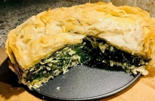 For years I made a spanakopita recipe I got from the Greek Festival in Dallas. Yia-Yia’s recipe called for fresh spinach, green onions, dill and mint, eggs and feta. But her secret ingredient was cottage cheese to boost the flavor of cheese and add creaminess. In Europe cottage cheese is oddly rare. While available in Liverpool, even small tubs were expensive. But when we couldn’t find any on Ikaria, we substituted a creamy farmer’s cheese.