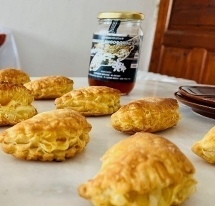 Like cheddar in the UK, feta is ubiquitous in Greece. A generous slice is added to Greek salads, baked in foil with peppers and tomatoes, or cut into triangles and served simply with olives. But on an island where goats and sheep abound, fresh farmer’s cheese comes in a variety of flavors and consistencies from thick and creamy to dry and crumbly. And when Robie and I accidentally ordered Greek salad and a cheese appetizer one night at dinner, we brought the leftovers home to make Spanakopita and turn the rest into Tiropita, traditional cheese pastries we ate with a drizzle of Ikarian honey.