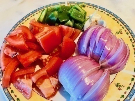 - 2-3 Roma tomatoes, cut into large cubes and seasoned with salt