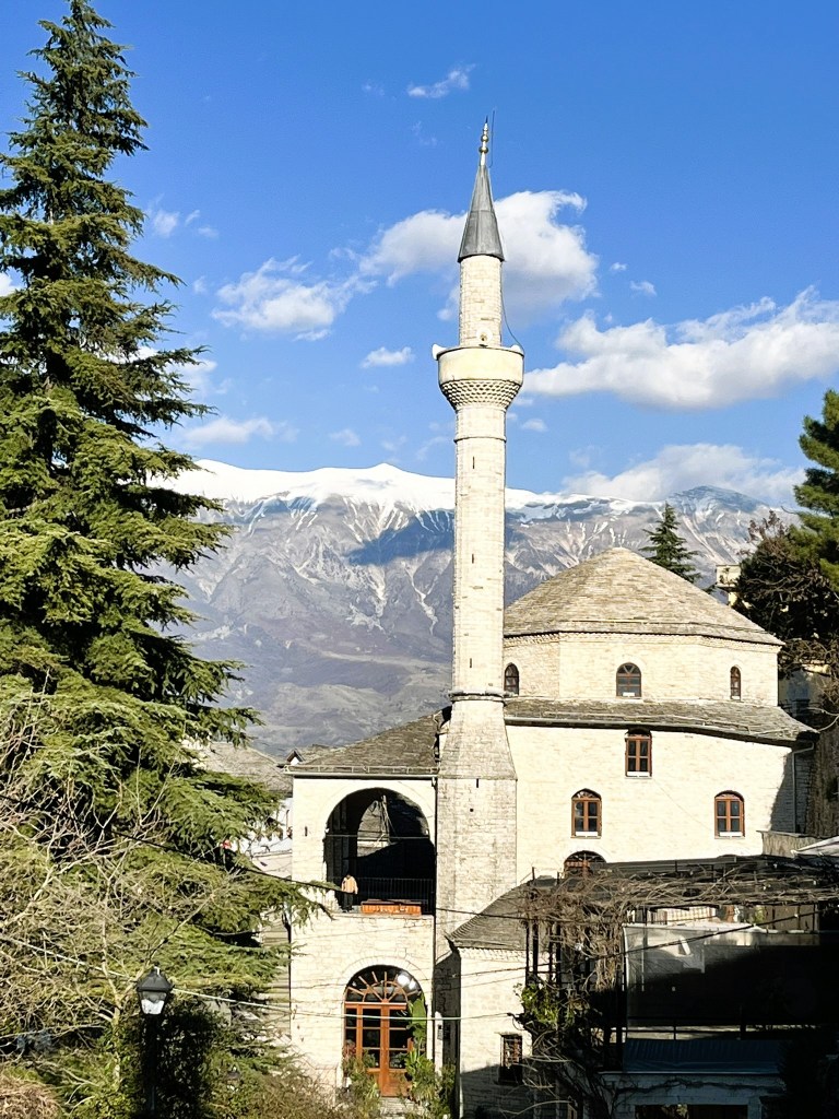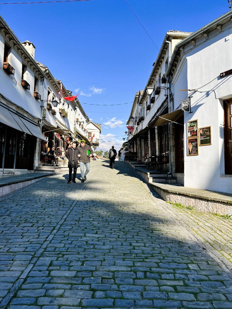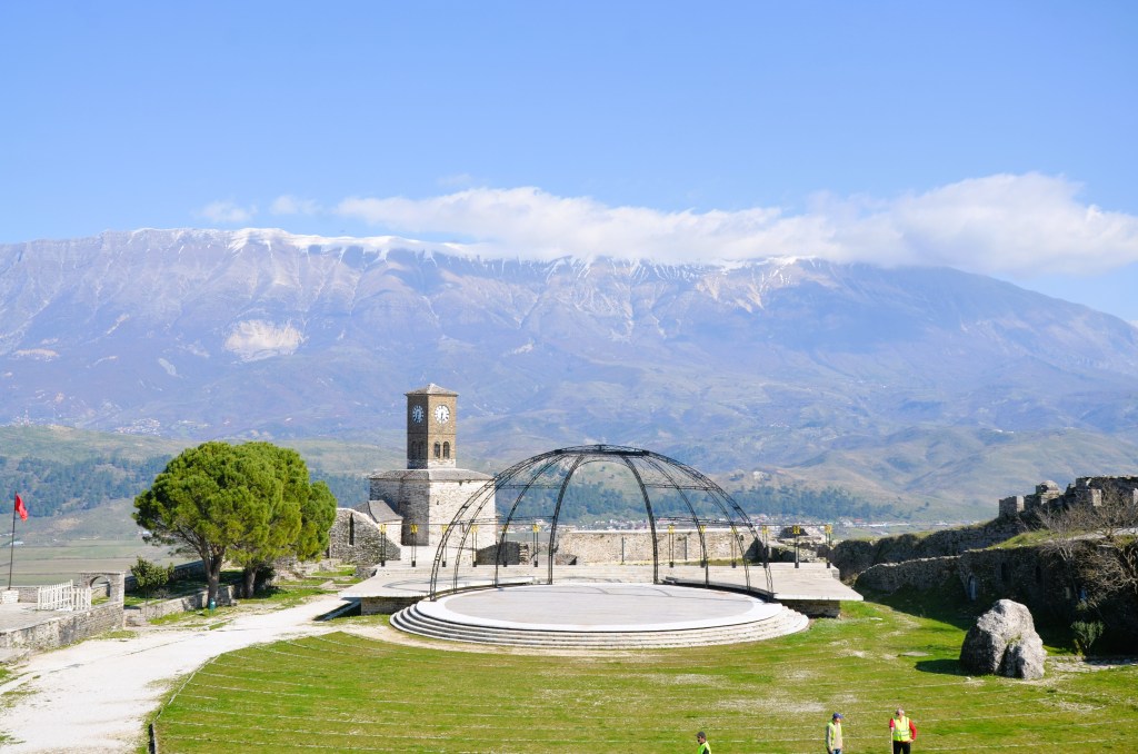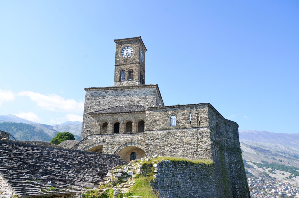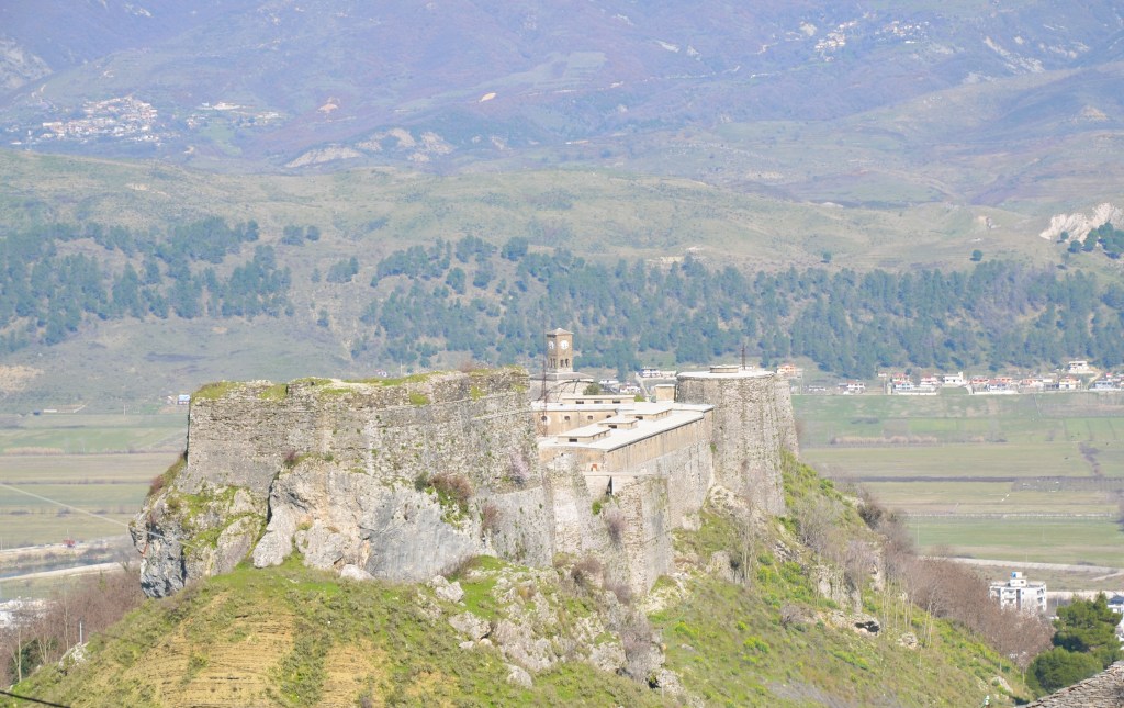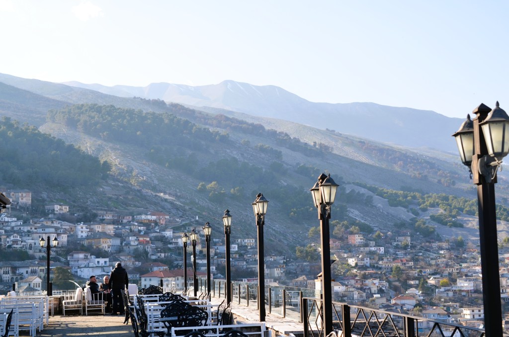 While staying in one country for seven months seems counterproductive to our mission to “see the world”, Albania’s proximity to Greece, Italy and the Balkans makes it a great hub for taking short, five- or six-day trips via ferry or bus to explore nearby destinations. After Reid laid out a plan to take one trip a month, she made the UNESCO city of Gjirokastër, Albania our first excursion. So, in February we got to see this beautiful stone city that’s only a short bus ride from Sarandë.