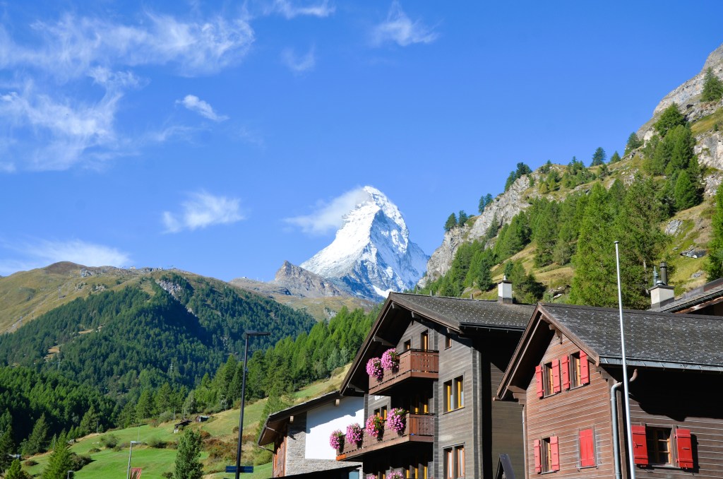 A four-to-five-hour train ride from Milan will bring you to the alpine village of Zermatt, just across the border from Italy, and home to the most famous mountain in Europe, The Matterhorn. The views from the train offer beautiful scenery of both Italy and Switzerland. There are no cars allowed in Zermatt, save a few electric taxis and buses to shuttle you from place to place, but it is a very walkable town.