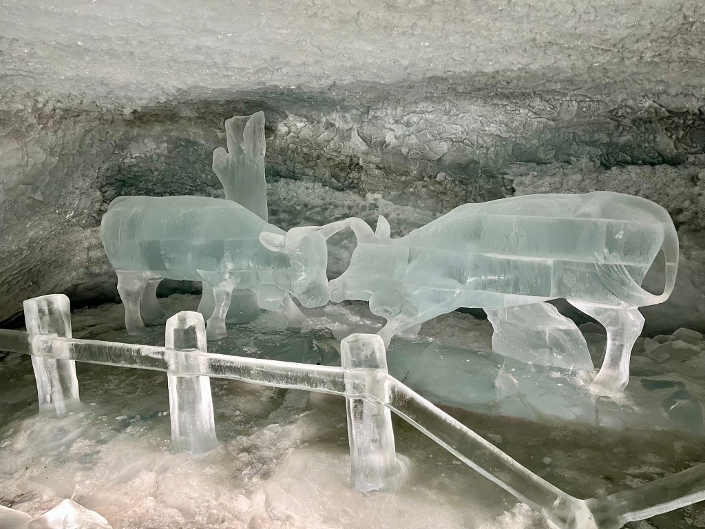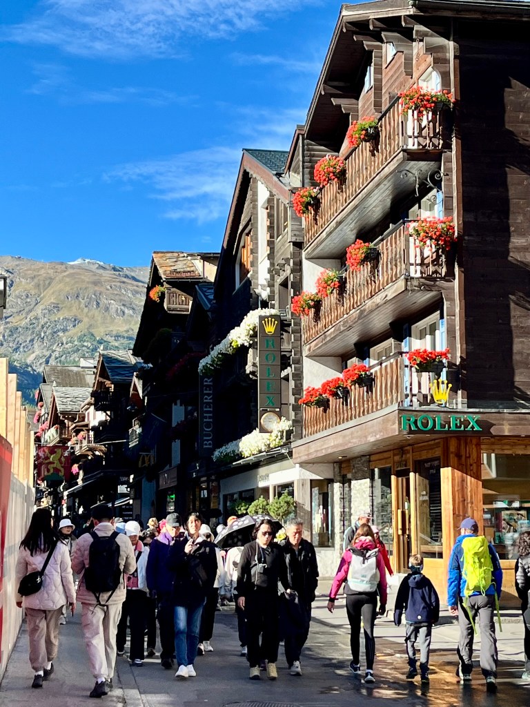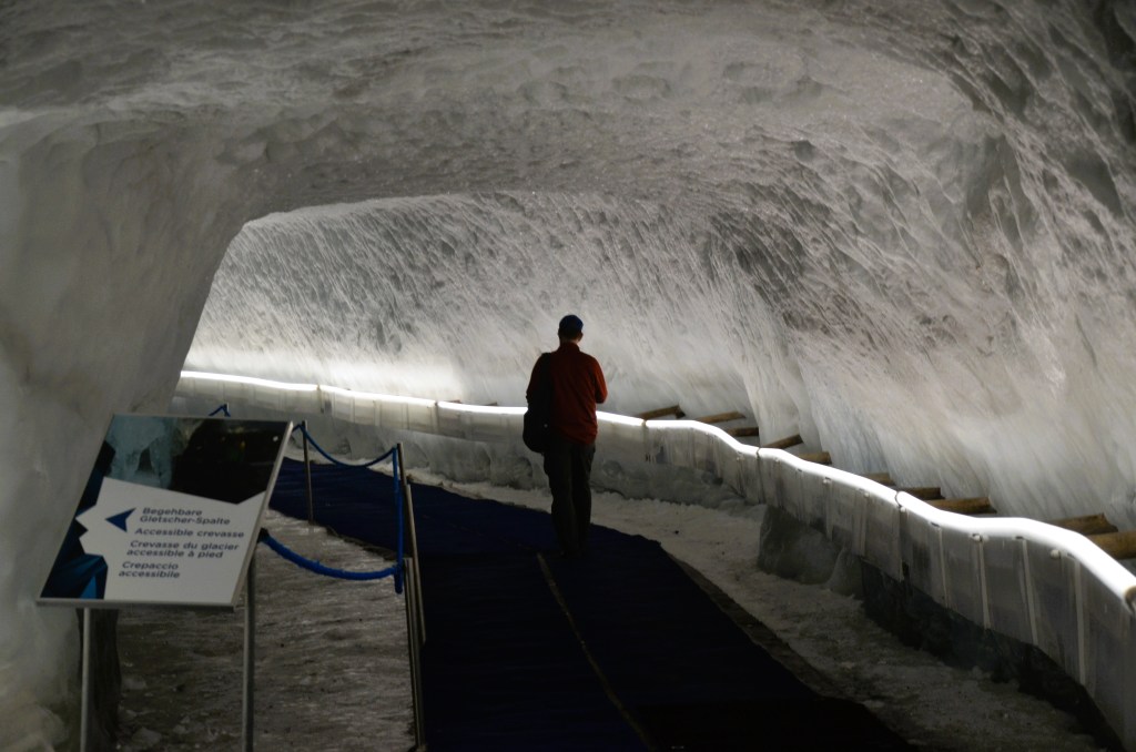 Zermatt is expensive, like most of Switzerland, so you may want to look at staying in Tasch. Cars are only permitted as far as Tasch, the last village before Zermatt, but shuttle trains run every thirty minutes. The area offers skiing in season, and there are numerous hiking trails to be discovered. The gondola to the top of the mountain runs year-round. Your gondola ticket allows you to get off for lunch or a glass of wine and enjoy the magnificent views of the Alps. Admission to the ice cave carved into the glacier at the top of the mountain is an added bonus with your gondola ticket.