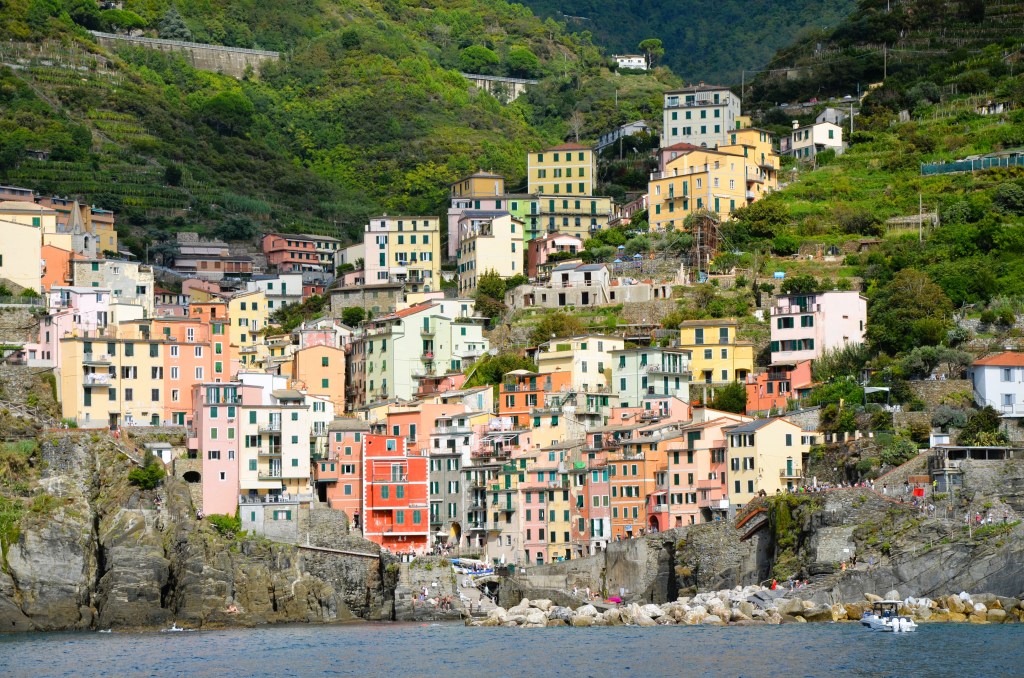 You can hike along the hills that run above the villages, this requires a pass that allows hiking along the trails and use of the local train between the villages and La Spezia. Alternately, the ferry stops at four of the five villages and lets you get off and on before returning to La Spezia. Pro tip: Start your day early on the ferry so you have time to explore several of the villages.