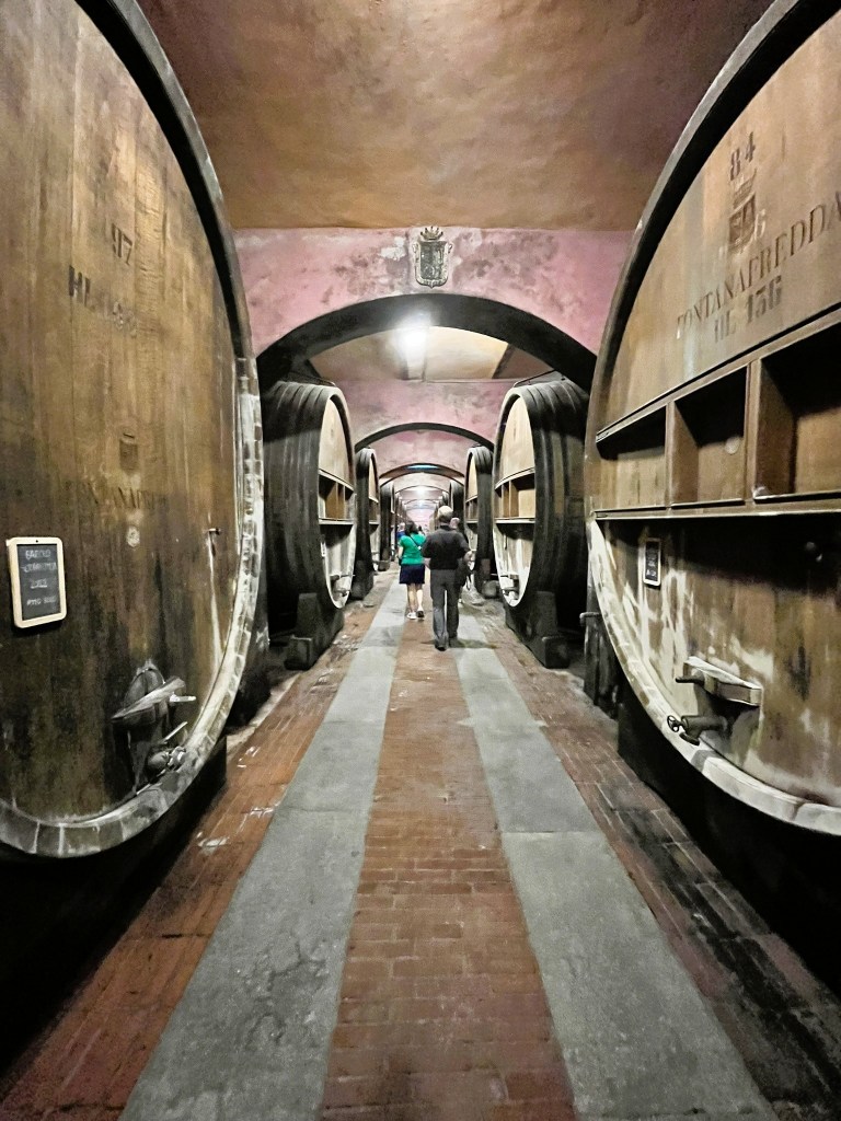 We took a tour of the Fontanafredda winery, founded in 1858, which produces 180,000 bottles a year and has both a hotel and restaurant on site. The tour gave us insight into the historical wine making process from the late 1800’s, which is quite different than the process today. Some of the original aging casks were larger than a truck and held thousands of gallons of wine. Although no longer used, they are kept as a nod to the history of the winery and its roots going back over 170 years.