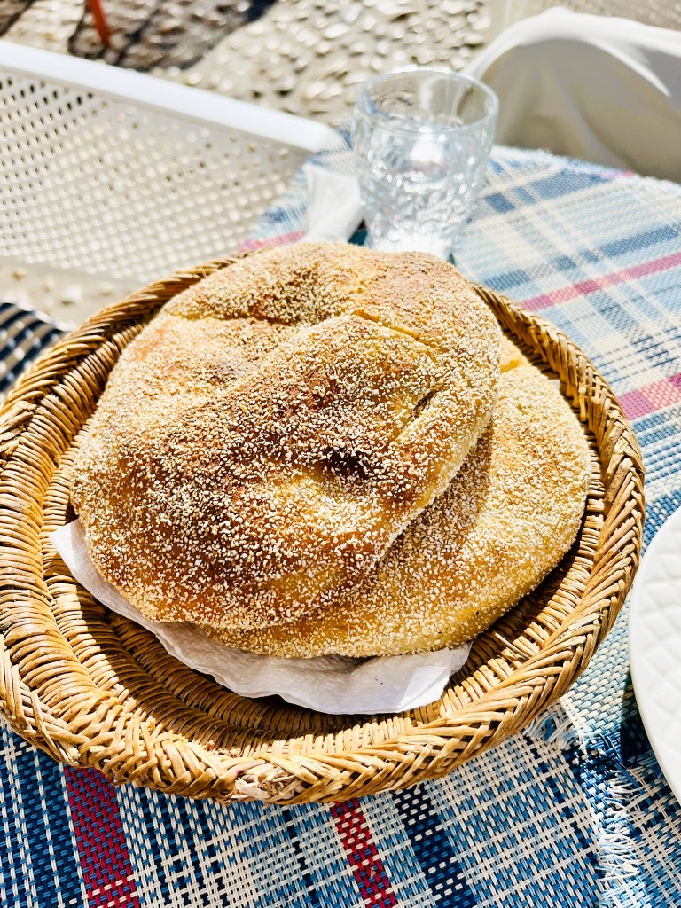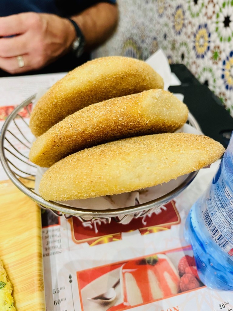 The favorite bread in Morocco is khobz, a soft, round loaf essential for sopping up all those delicious sauces. Plus, since the traditional way of eating in Morocco is with your hands, this little baby makes ripping off a chunk and spreading open the edges to pick out bites of meat and vegetables the perfect vehicle for popping them in your mouth.