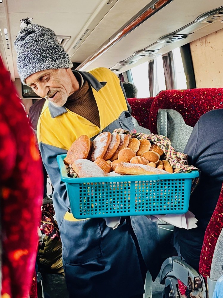 Honey-soaked cakes, almond cookies, cream-filled pastries dipped in chocolate and nutty strudels, Moroccans love their sweets. And so did we! Plus, check out the guy selling sweet breads during a stop on the bus to Agadir. A little something to take care of a growling tummy on the three-hour ride from Essaouira and a bargain at one dirham a piece (about eleven cents).