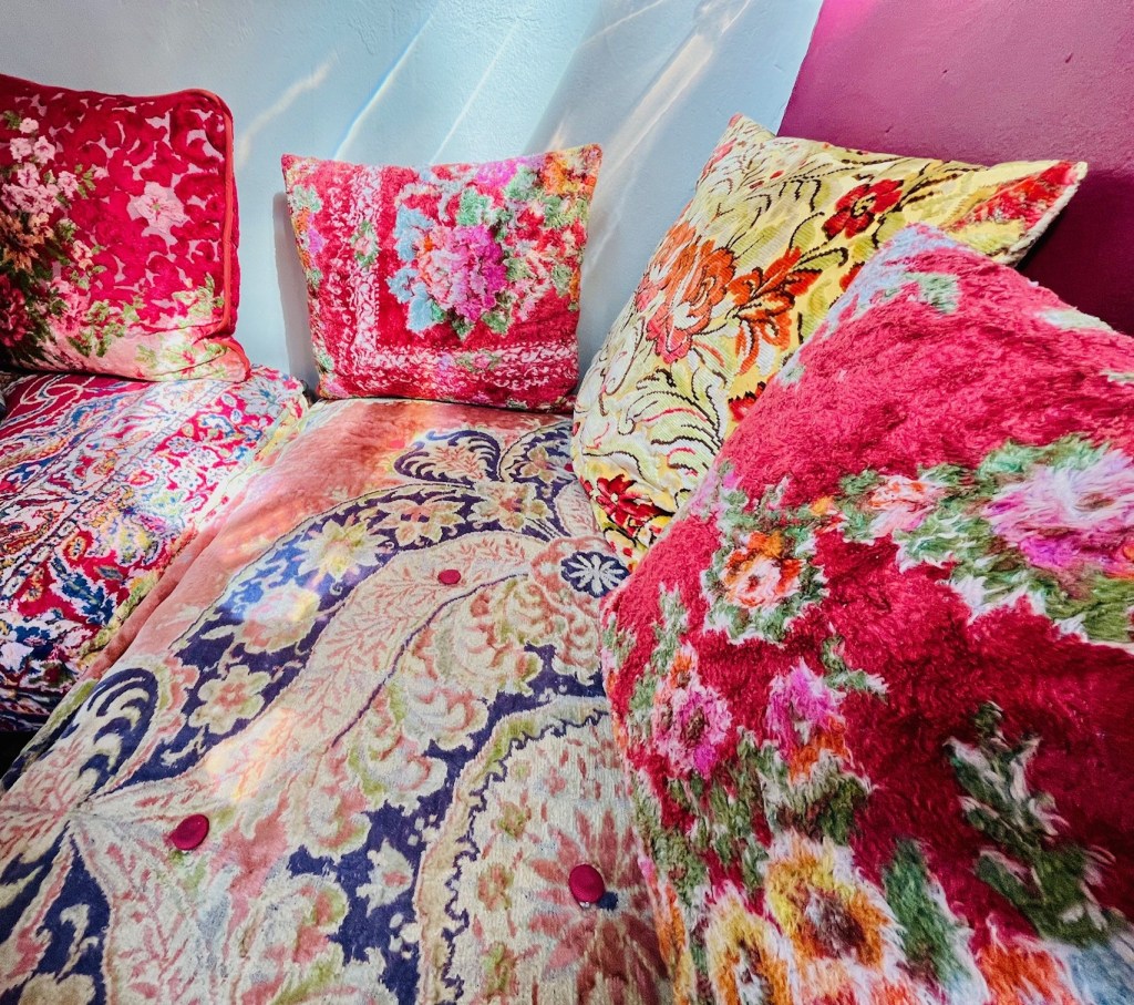 Colorful restaurants where every bench comes with plush cushions and guests occasionally sit on the floor