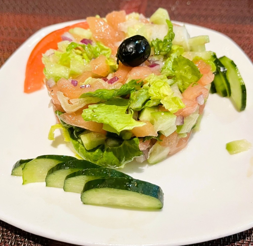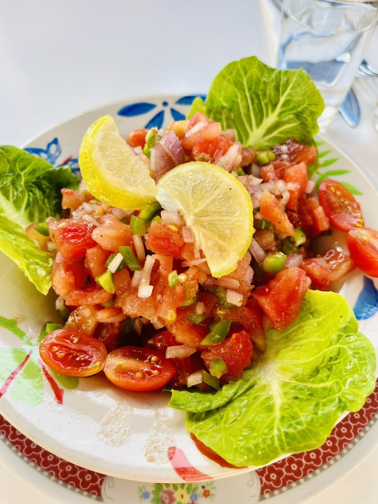 Fresh tomatoes and cucumbers lightly dressed in olive oil and lemon juice. Unassuming vegetable broth filled with hearty chickpeas, lentils and pasta. These humble dishes are a great palate cleanser for the deep, rich flavors that are sure to come next.